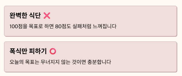 다이어트는 모든 상황에서 100점을 목표로 할 필요가 없습니다.